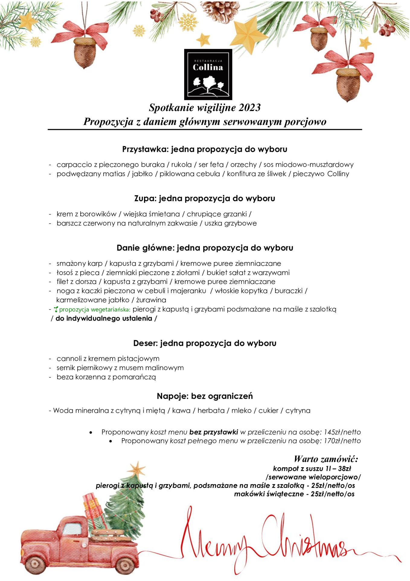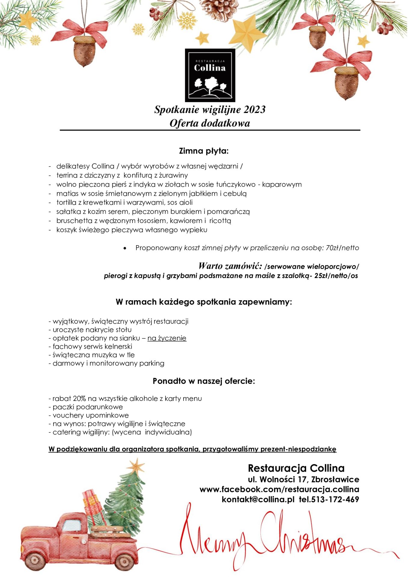Organizujemy spotkania świąteczne duże i małe, mniej lub bardziej oficjalne – ale zawsze utrzymane w uroczystym klimacie świąt.